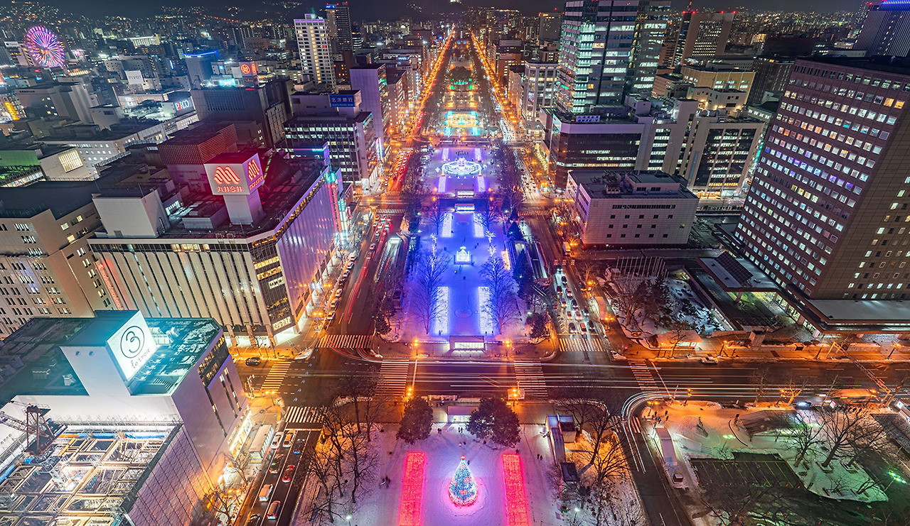삿포로 도심 한가운데 동서로 길게 뻗어 있는 오도리 공원은 계절마다 다른 분위기를 보여주는 도시의 상징 같은 공간이에요. 눈 축제, 여름 맥주 축제, 각종 이벤트가 이곳에서 열립니다. 공원 동쪽 끝에는 삿포로 TV 타워 전망대가 있어, 오도리 공원과 격자형 도심 풍경을 한눈에 내려다볼 수 있습니다.